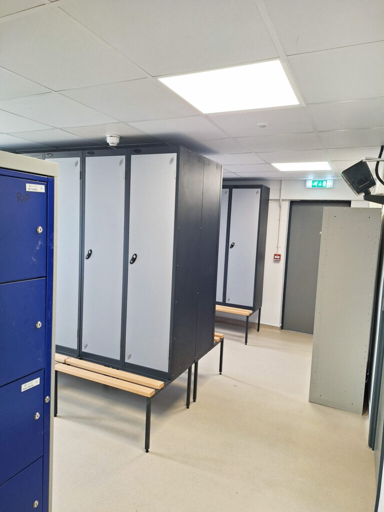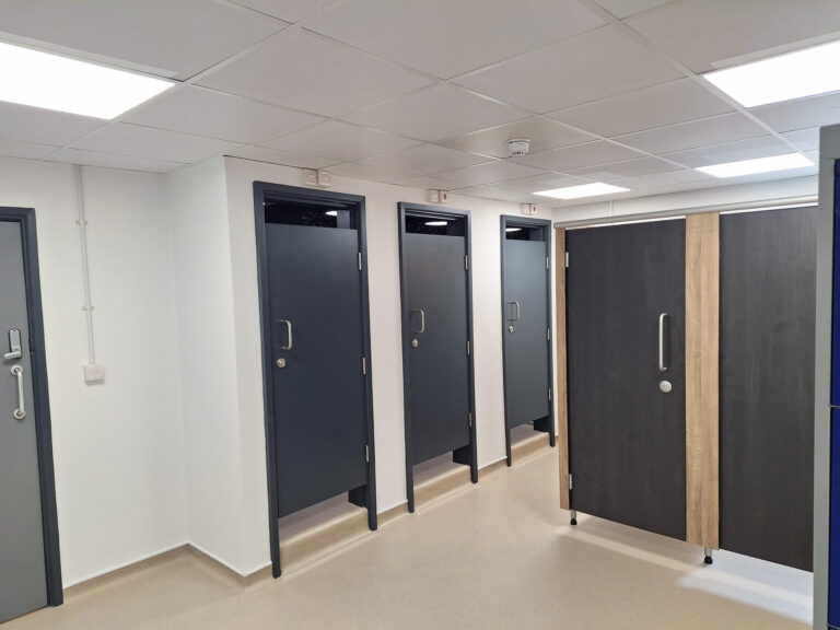 This extensive refurbishment project also included a strip out, the installation of new ceilings, partitions, cubicles, showers and flooring, plumbing, along with electrical works, lockers and benches.